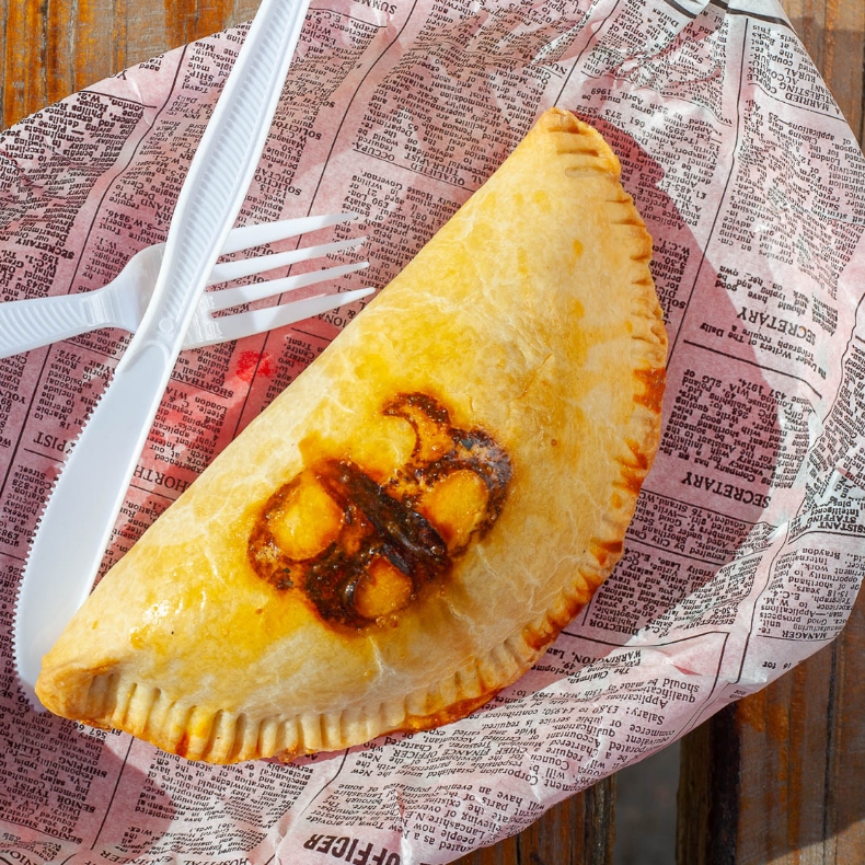 A simpler set up than our fry on site set up that serves handheld pot pies and banger sausages (often served as “Bangers and Mash” with mashed potatoes), and other items that don’t need to be fried. We are able to provide this set up indoors or outdoors depending on your venue and weather. All we need are two 120V outlets (for our oven and warmer) and space to set up our table and signage!