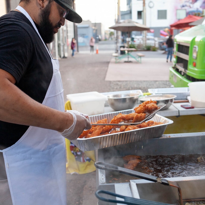 We can bring the chippy to you! A truly Fresh experience, where our fry team will come and set up our legendary Fish & Chips kitchen where you are. You get to enjoy the experience of fresh, fried fish and chips, while getting to watch our incredible team hand batter and fry everything for you and your guests. We can set up anywhere - your backyard or 10th floor balcony at work. We will fry everything fresh, break down, and leave without a trace!